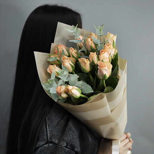 Букет "Абрикос" из 17 роз кения с эвкалиптом (40 см)
